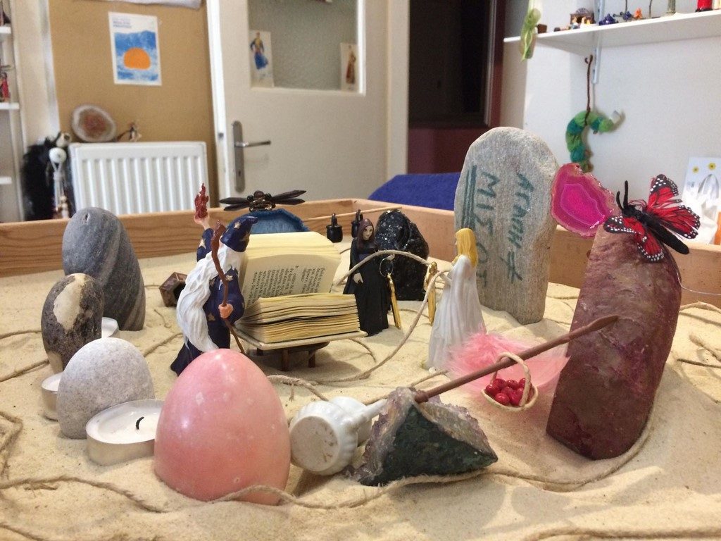 Οι μινιατούρες δρουν ως σύμβολα ή αρχέτυπα, από τα οποία ο/η θεραπευόμενος/η έχει την ευχέρεια να επιλέξει, και σχηματίζουν ένα είδος «αλφάβητου» μέσω του οποίου αυτός/ή καλείται να εκφραστεί. Είναι πολύ σημαντικό ο θεραπευόμενος να επιλέγει ελεύθερα, ώστε αυτό που δημιουργείται στο δοχείο με την άμμο να καθορίζεται όσο γίνεται περισσότερο από τον εσωτερικό του κόσμο («άσε τα σύμβολα να επιλέξουν εσένα»).